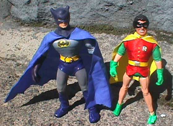 Robin is the head of the Exclusive Premiere "Greg Brady" on a Playing Mantis "Action Jackson" body. His costume (including removable mask) is made entirely from scratch, except the "R" logo wich was printed out from an image from Doctor Mego's site.
