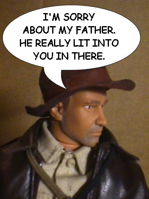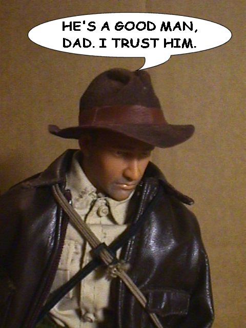 Indy follows Bond back through the basement.