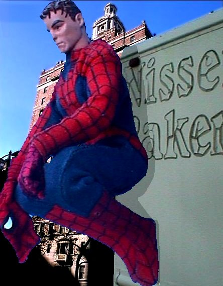 The head is from an "Ultra Force 12" figure. Mask and gloves custom-made first drafts. They'll be re-done. Body is a 21st Century Toys "Super Soldier" figure. Costume from a 12" Mego Spider-Man.